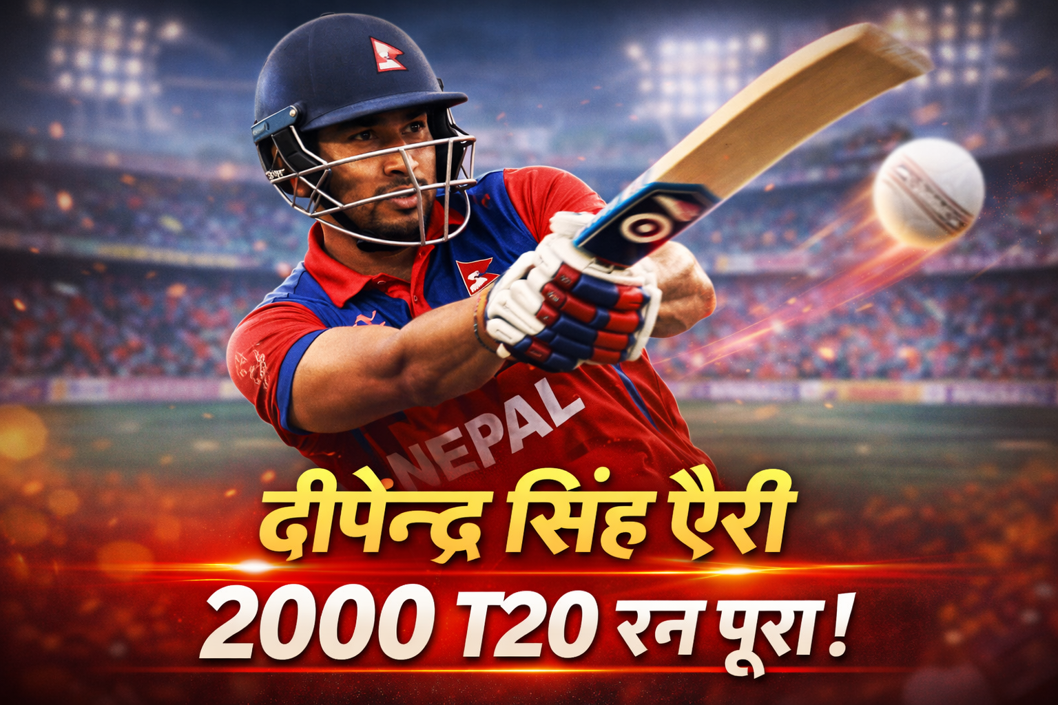 दीपेन्द्र सिंह ऐरीले २००० T20 रन पूरा गरे, इङ्ल्यान्डविरुद्ध ४४ रन प्रहार