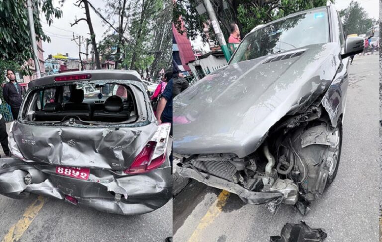 गौशालामा ८ वटा सवारी साधन एक आपसमा ठोक्किए, तीन जना घाइते